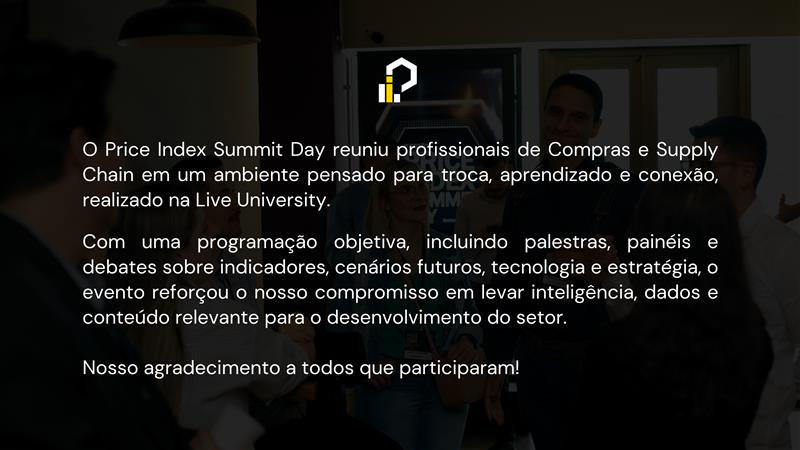 O Price Index Summit Day é uma iniciativa da Yeb Inteligência de Mercado, empresa com mais de 20 anos de atuação no setor. Um encontro exclusivo que promove conversas qualificadas sobre os desafios, as transformações e as tendências que impactam o Procurement e o Supply Chain no Brasil.